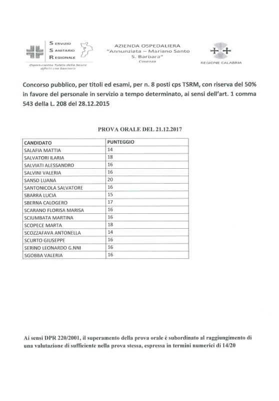 / risultato prova orale concorso TSRM del 18/12/2017